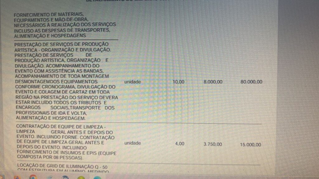 Outro fato intrigante que chama a atenção é o valor gasto com prestações de serviços que poderiam ser executados pela própria prefeitura